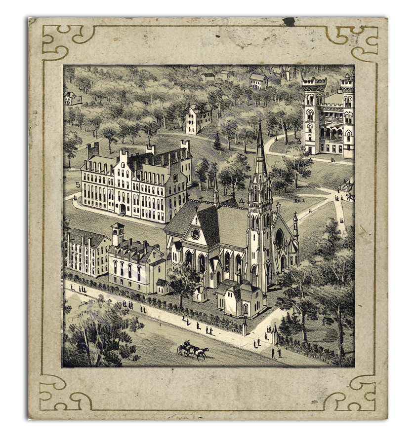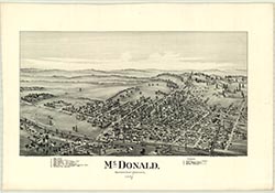 Railroad, churches. 22 x 32. Lithograph. |