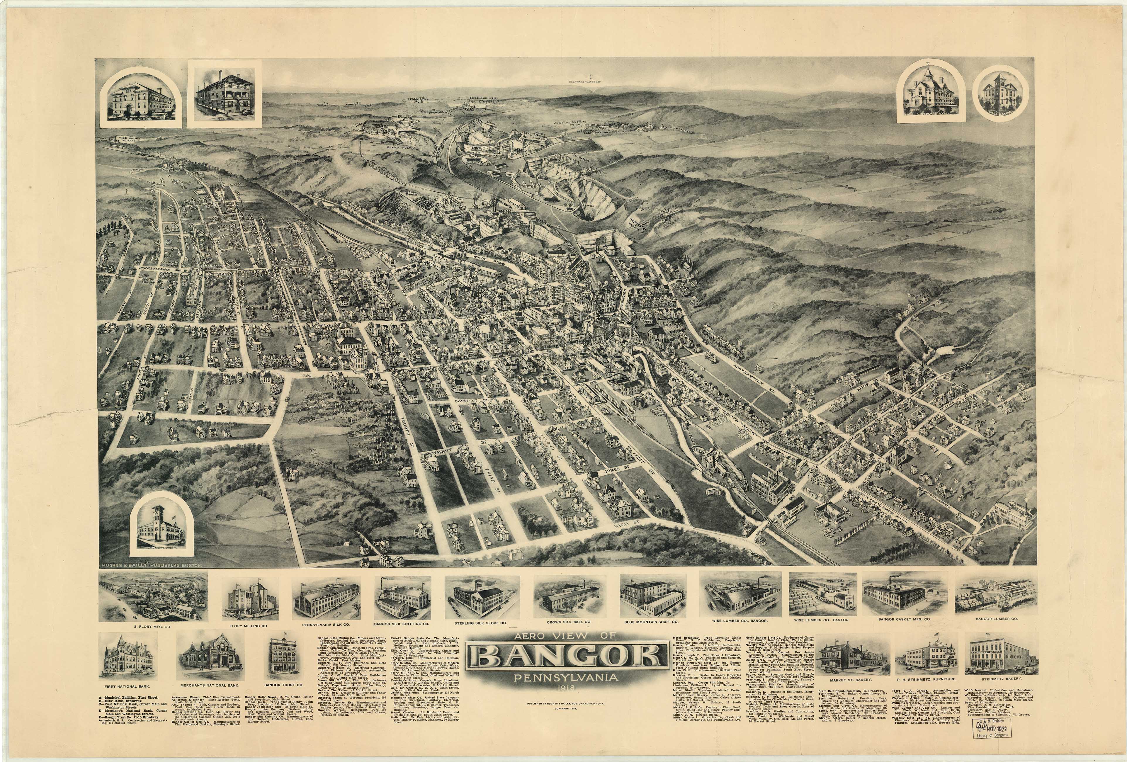 View of Bangor, Pennsylvania,"1918. Published by Hughes &