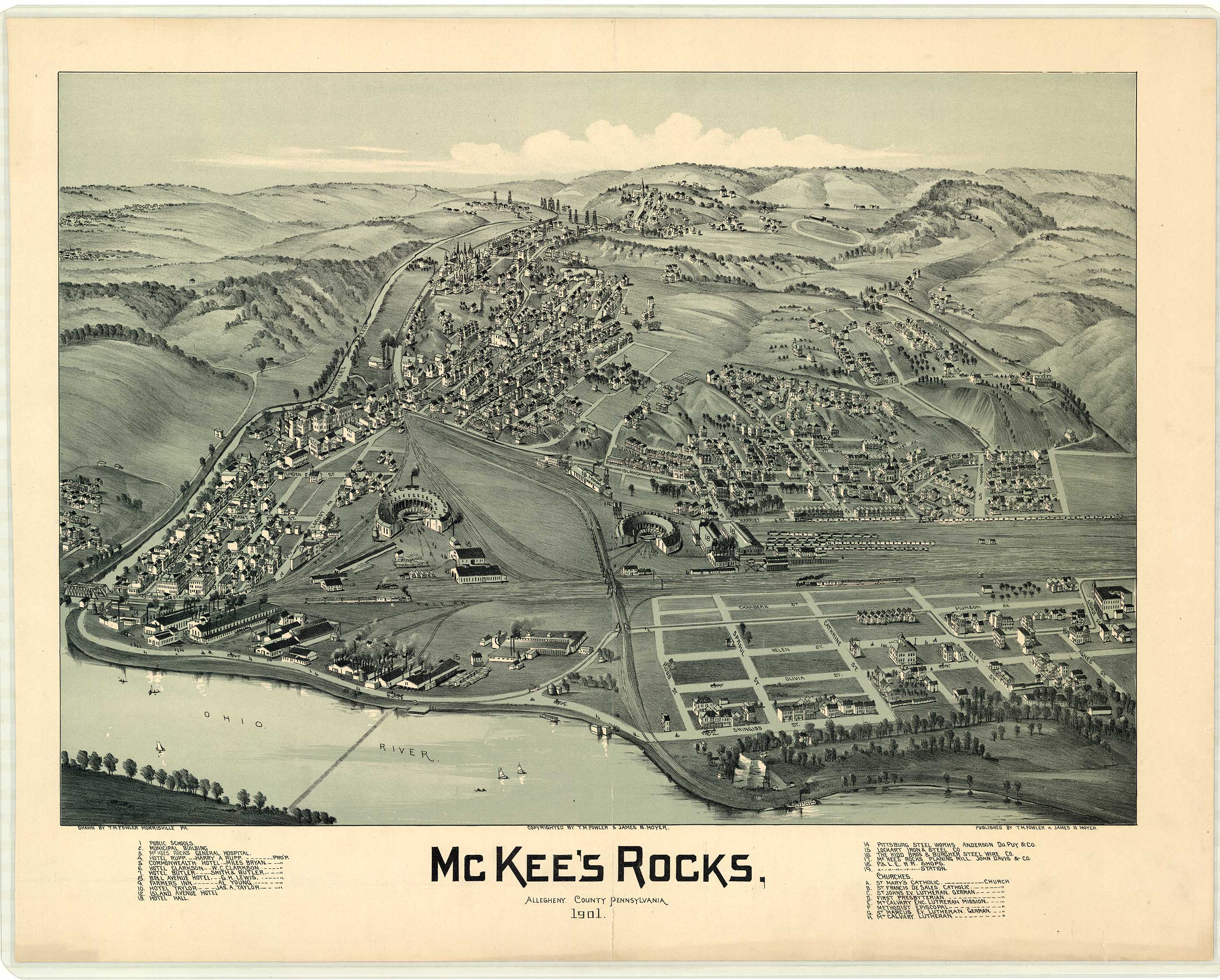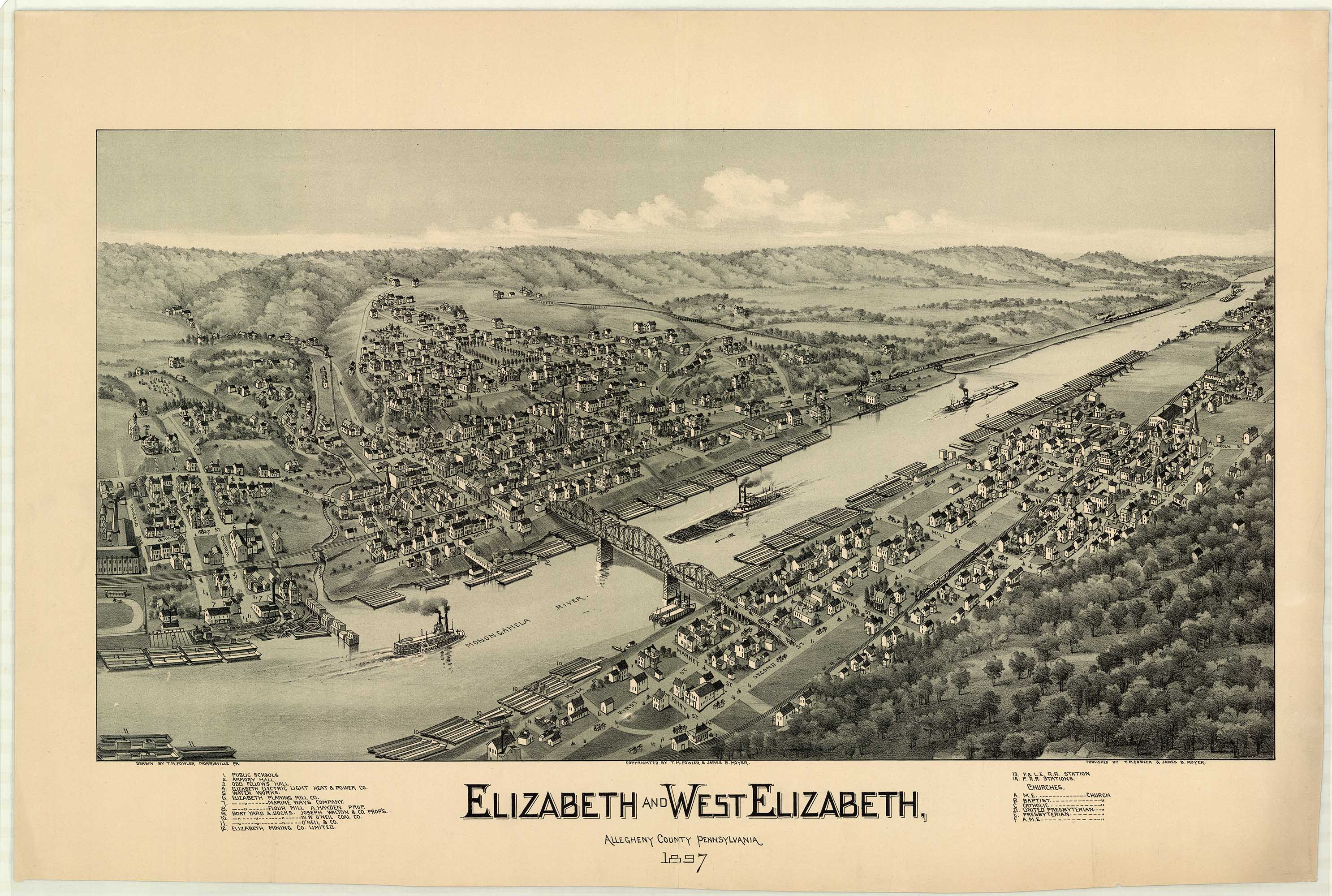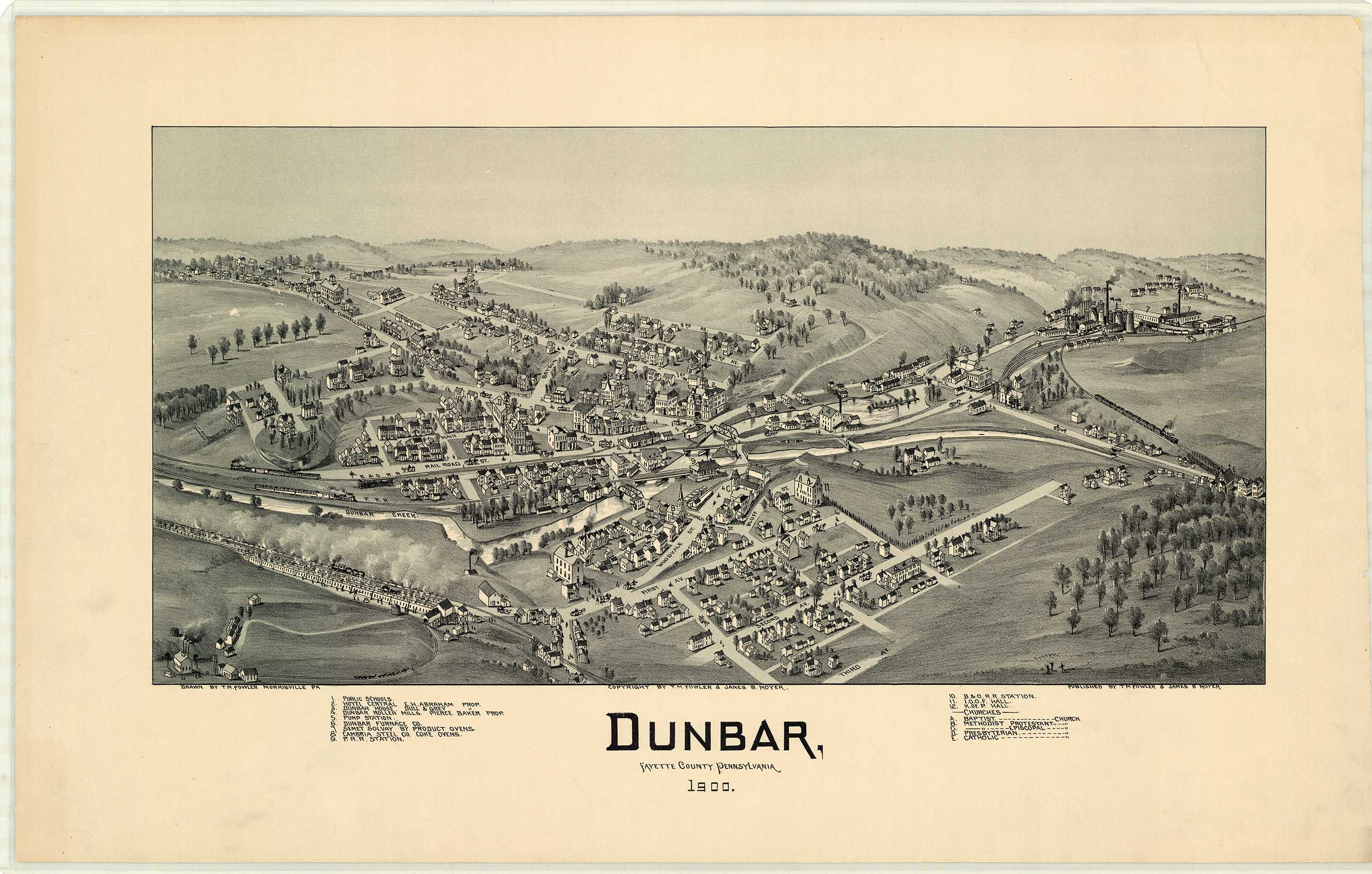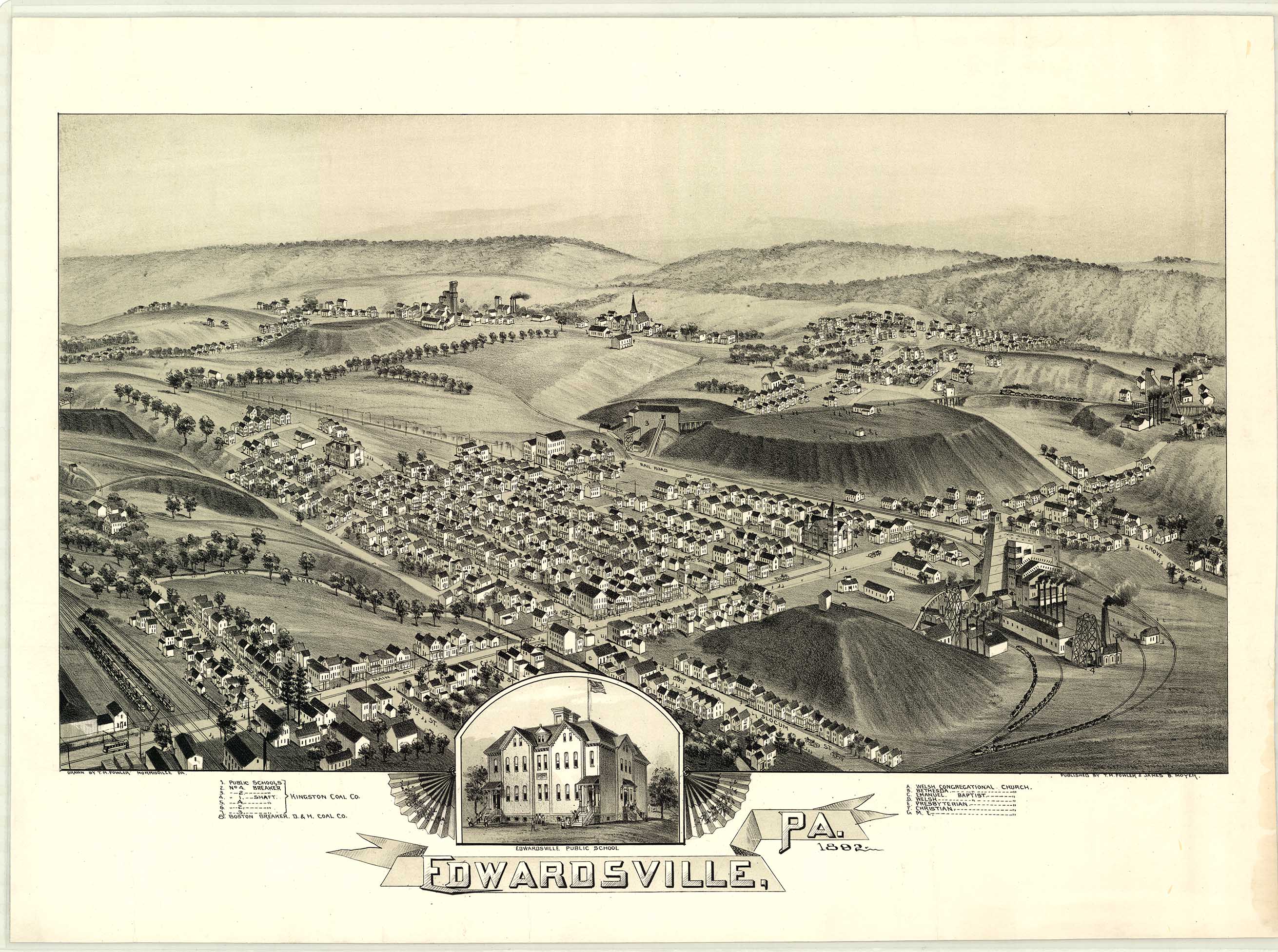 by T. M. Fowler & James B. Moyer. Shows: schools, iron and steel