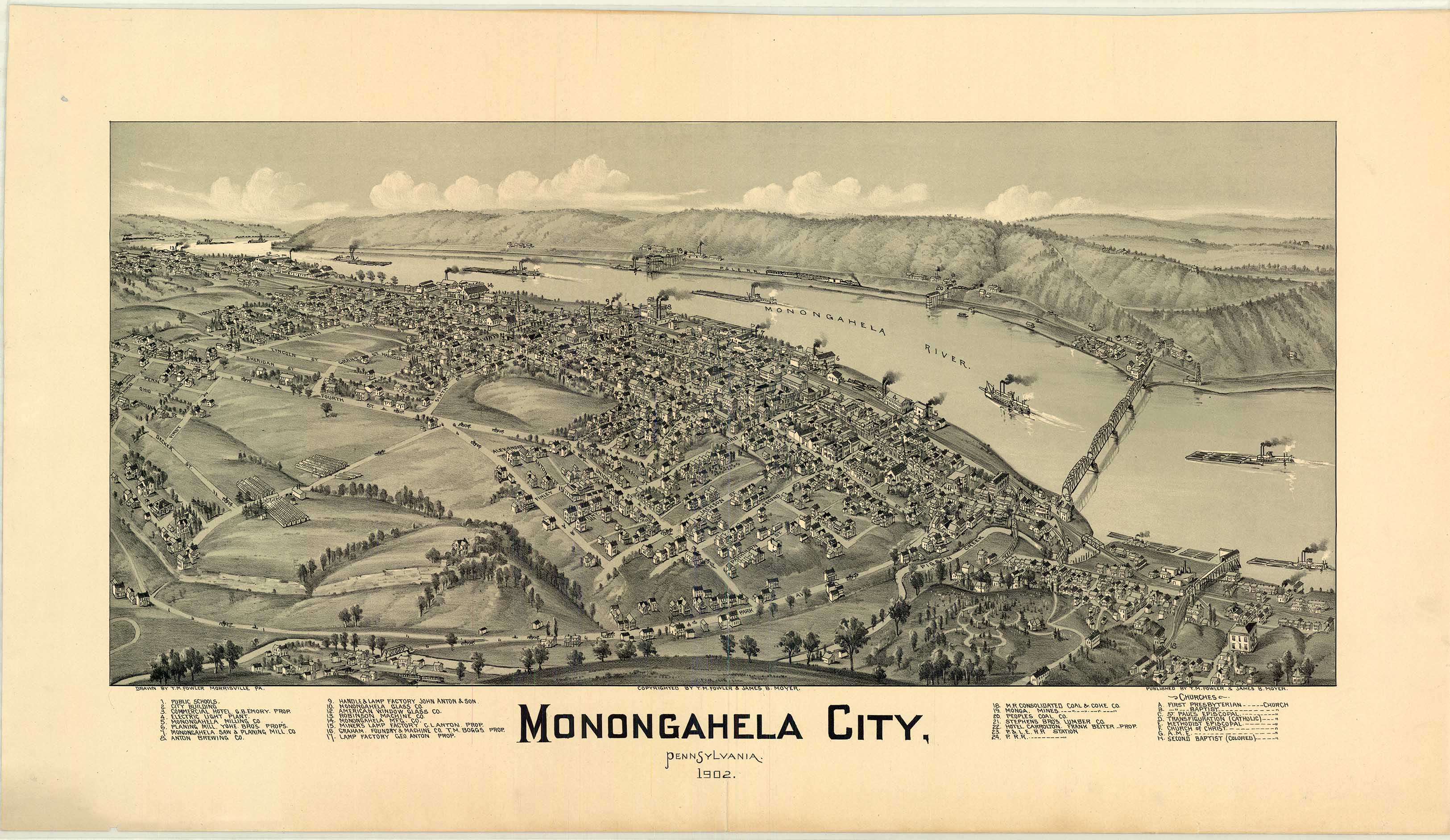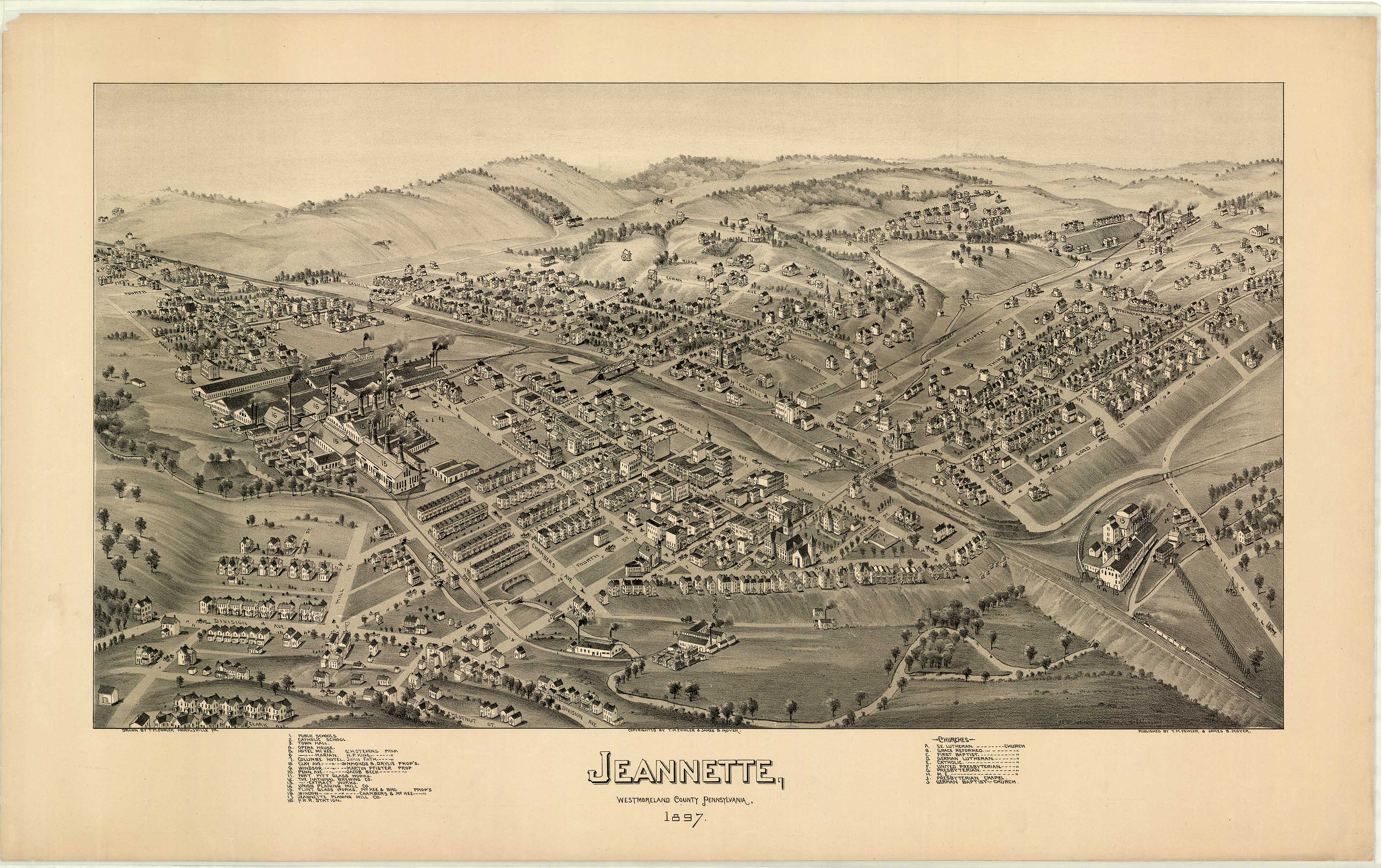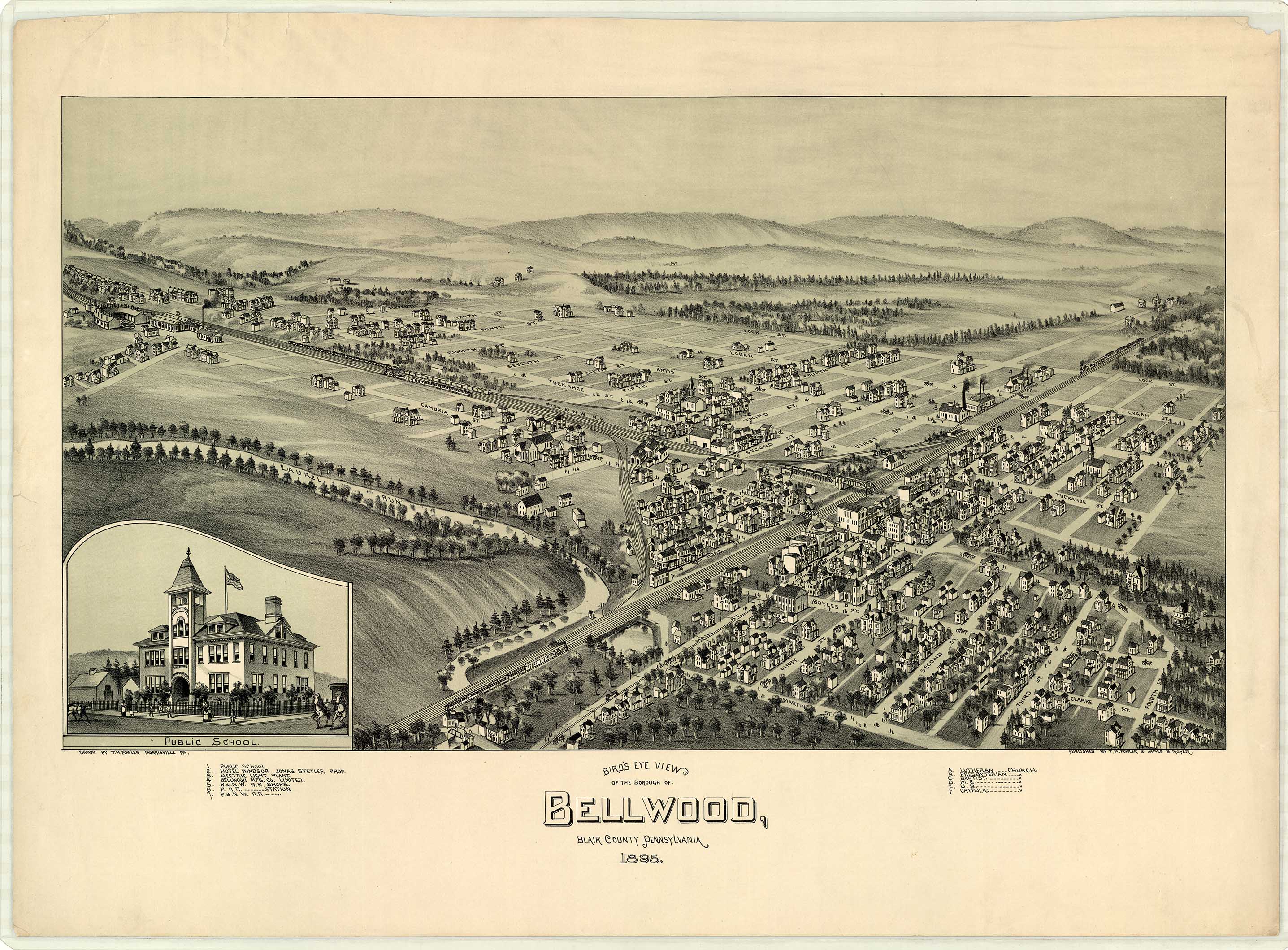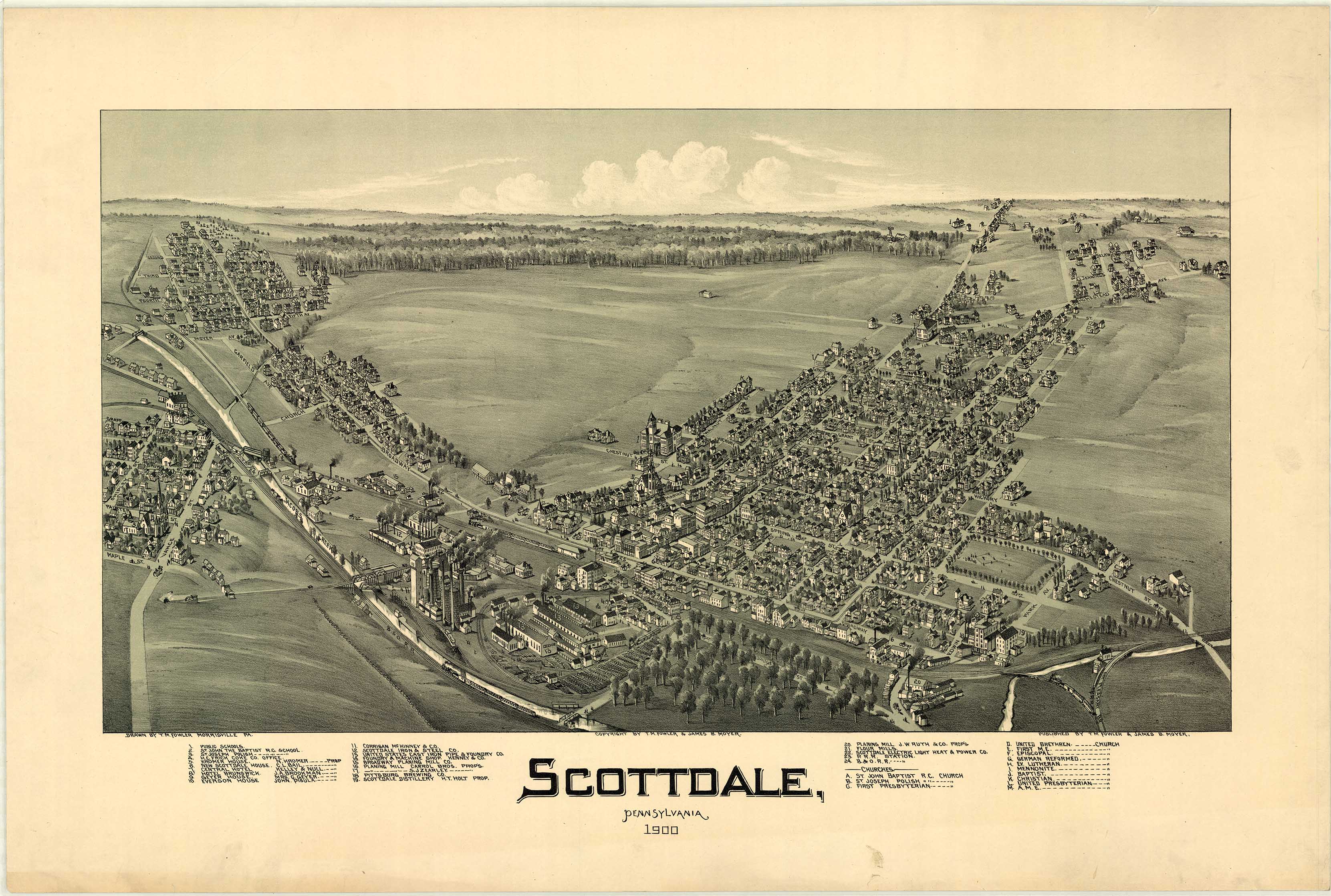 by T. M. Fowler & James B. Moyer. Shows: schools, iron and steel