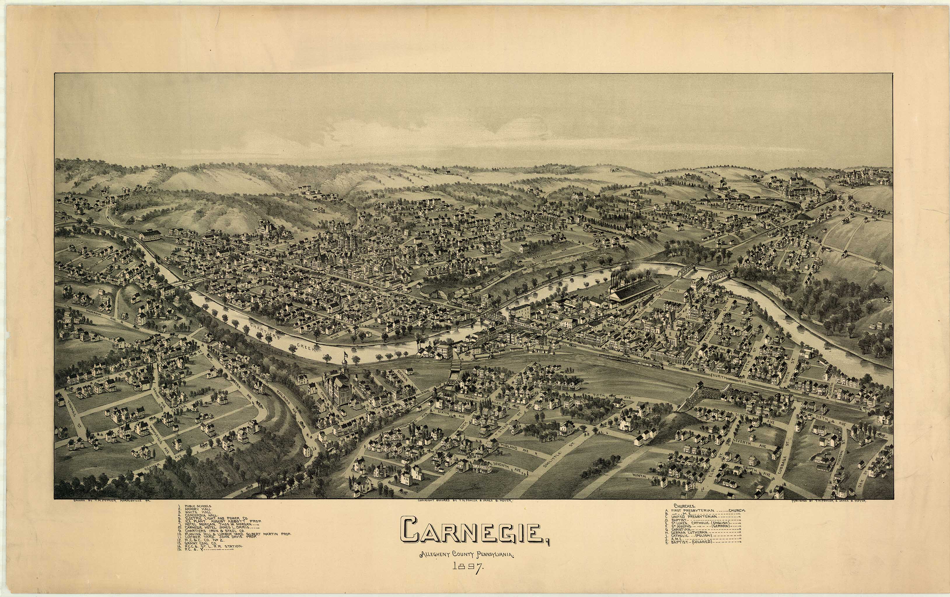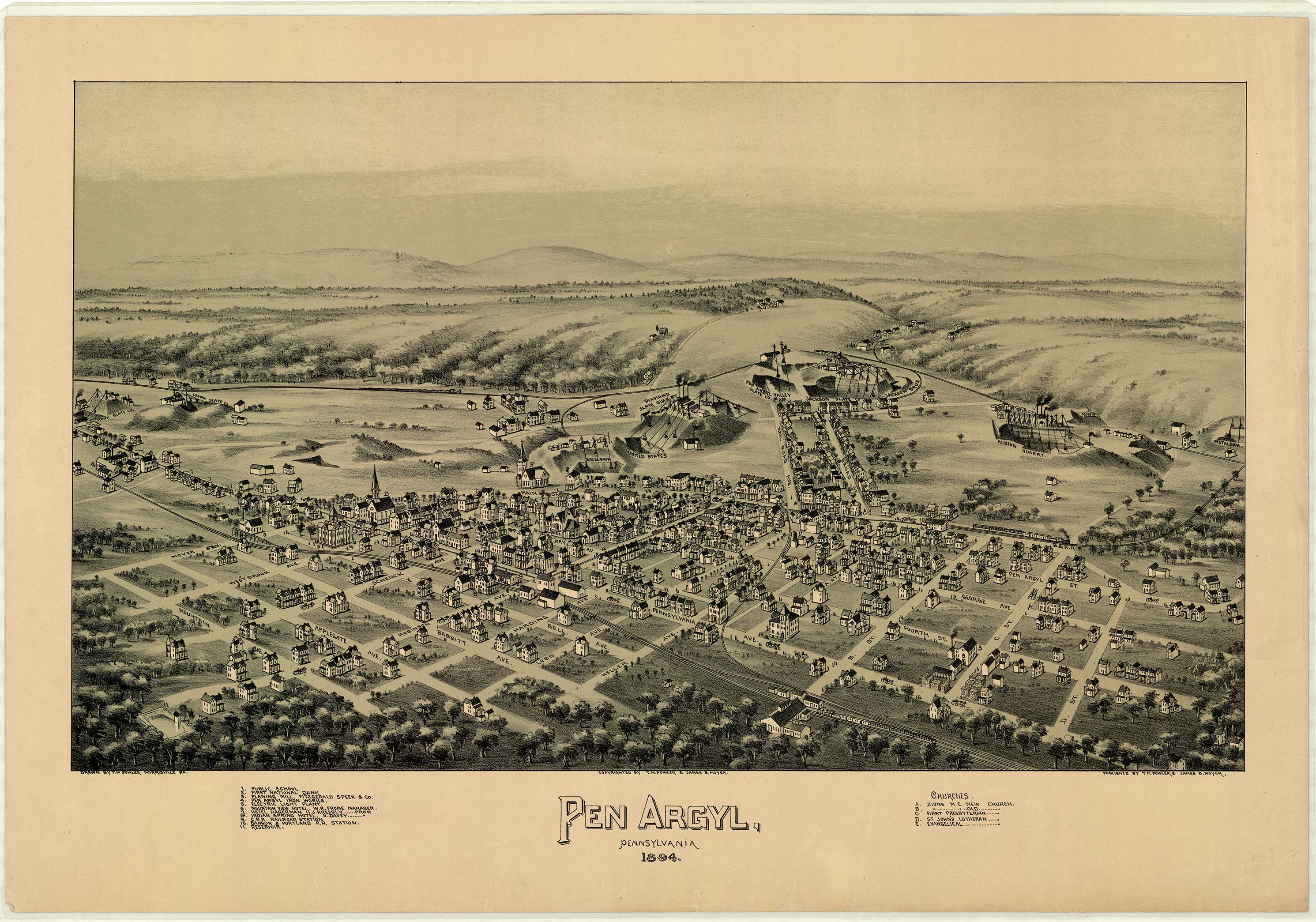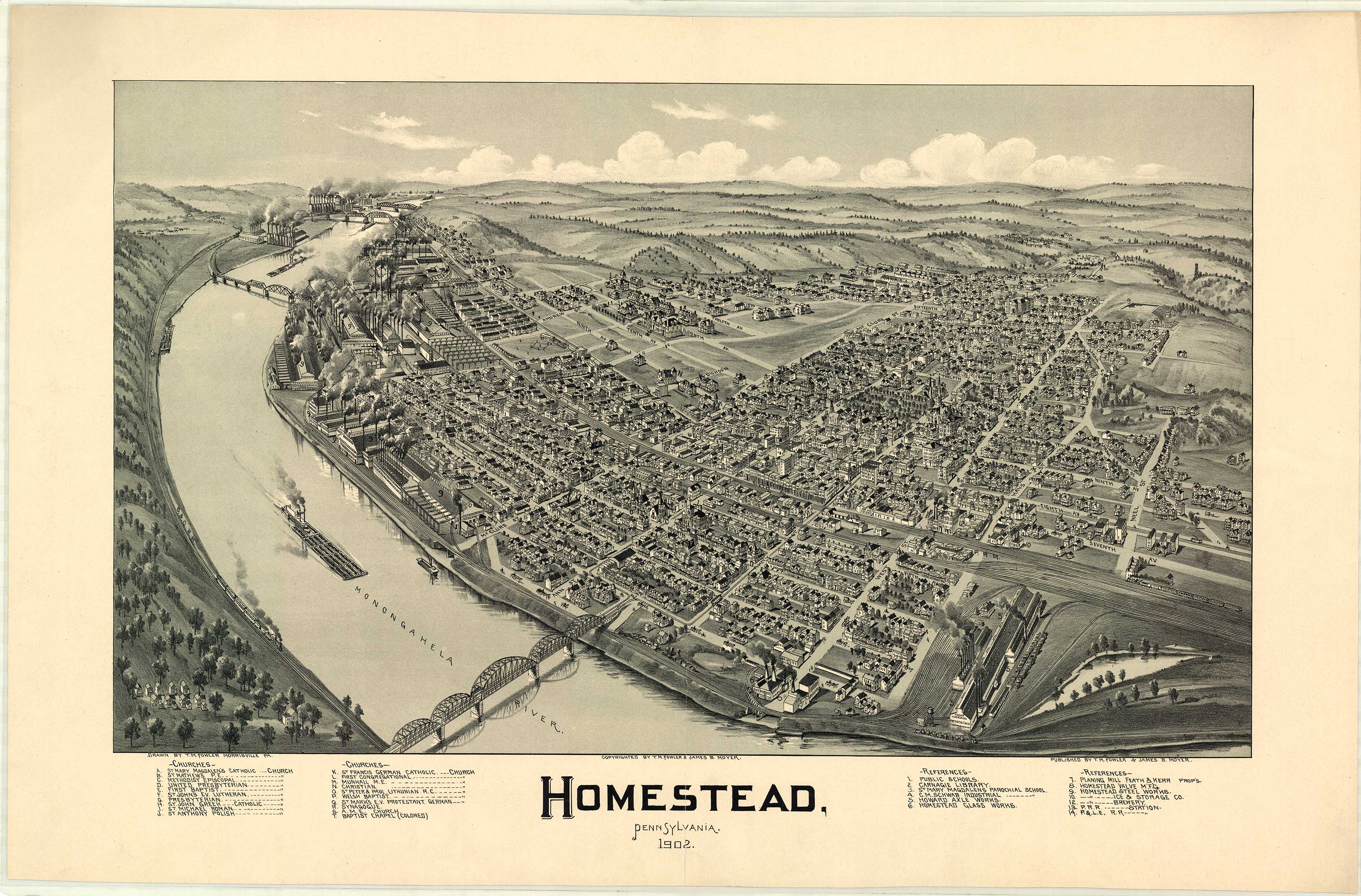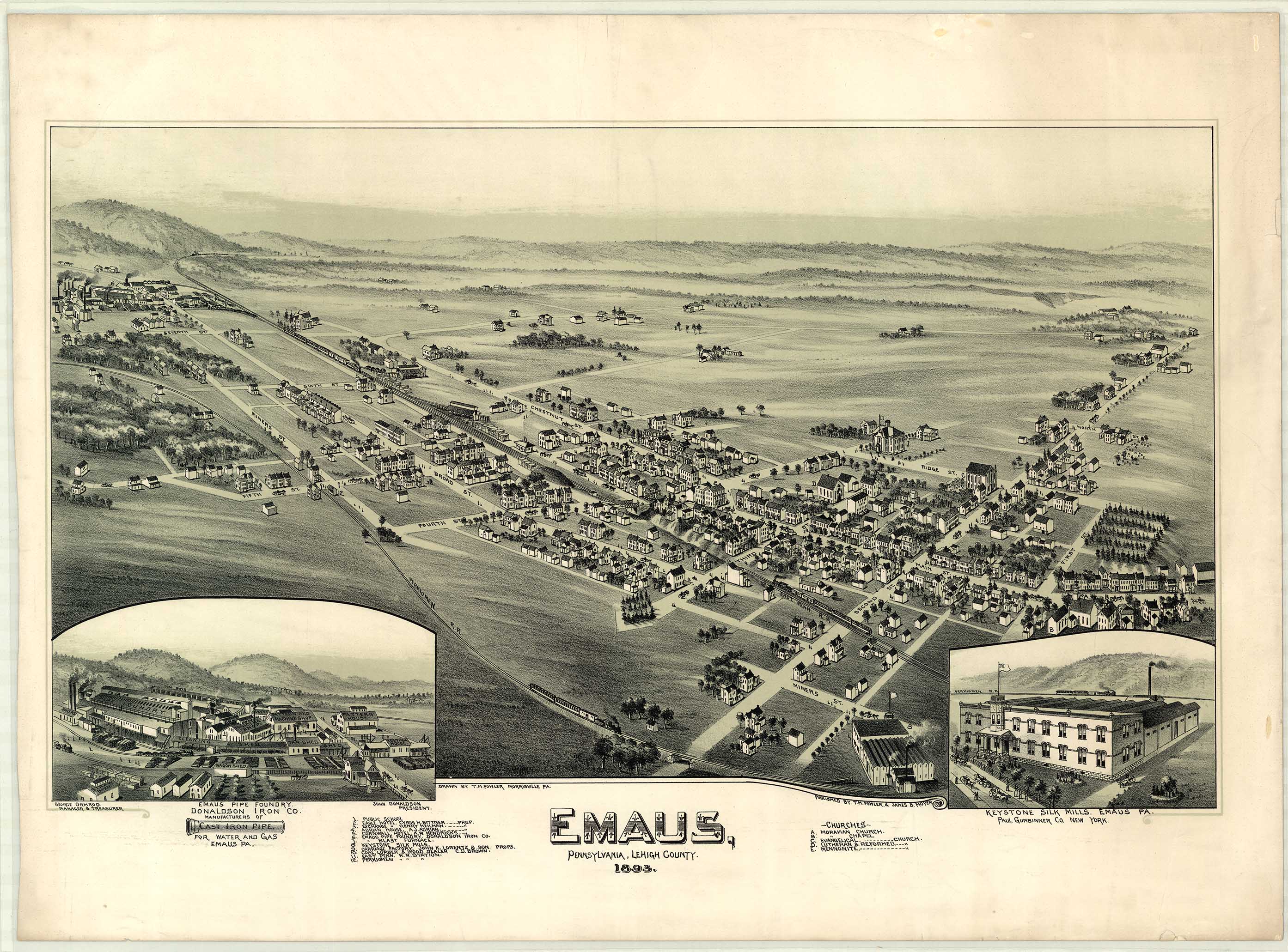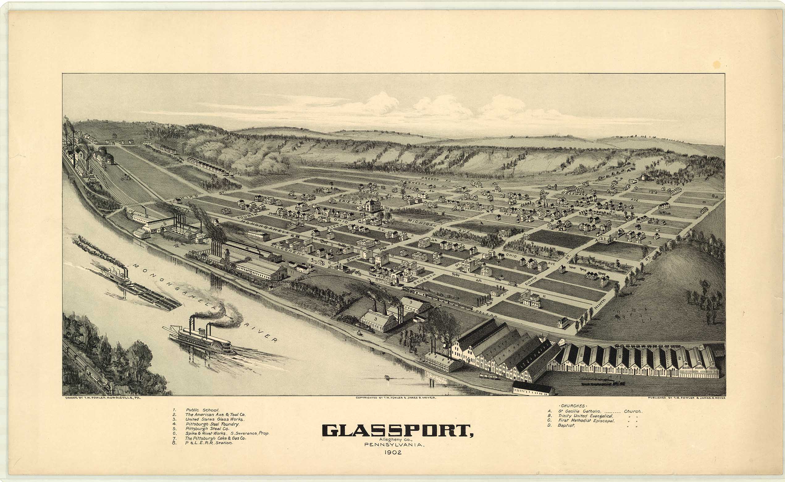 by T. M. Fowler & James B. Moyer. Shows: schools, iron and steel