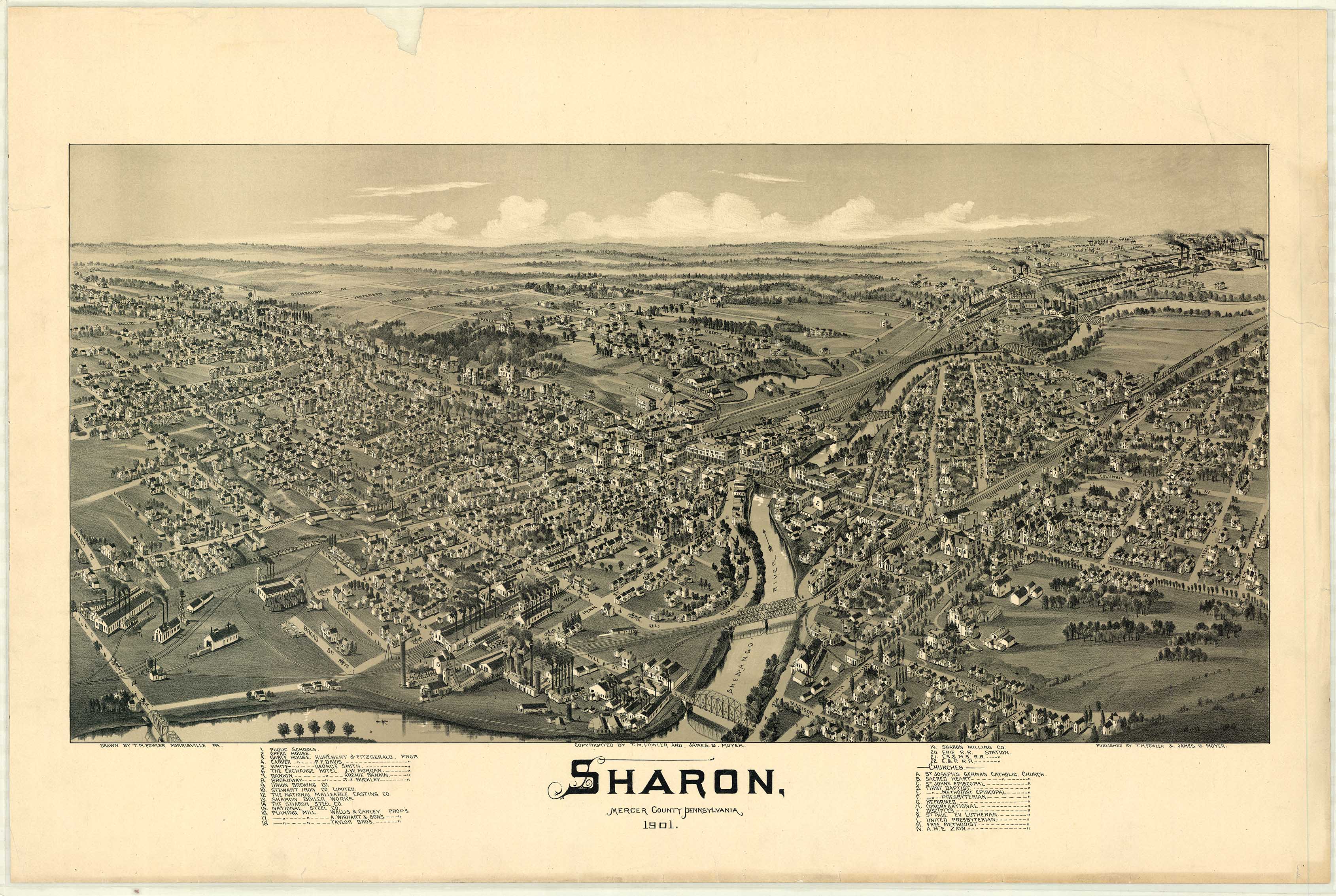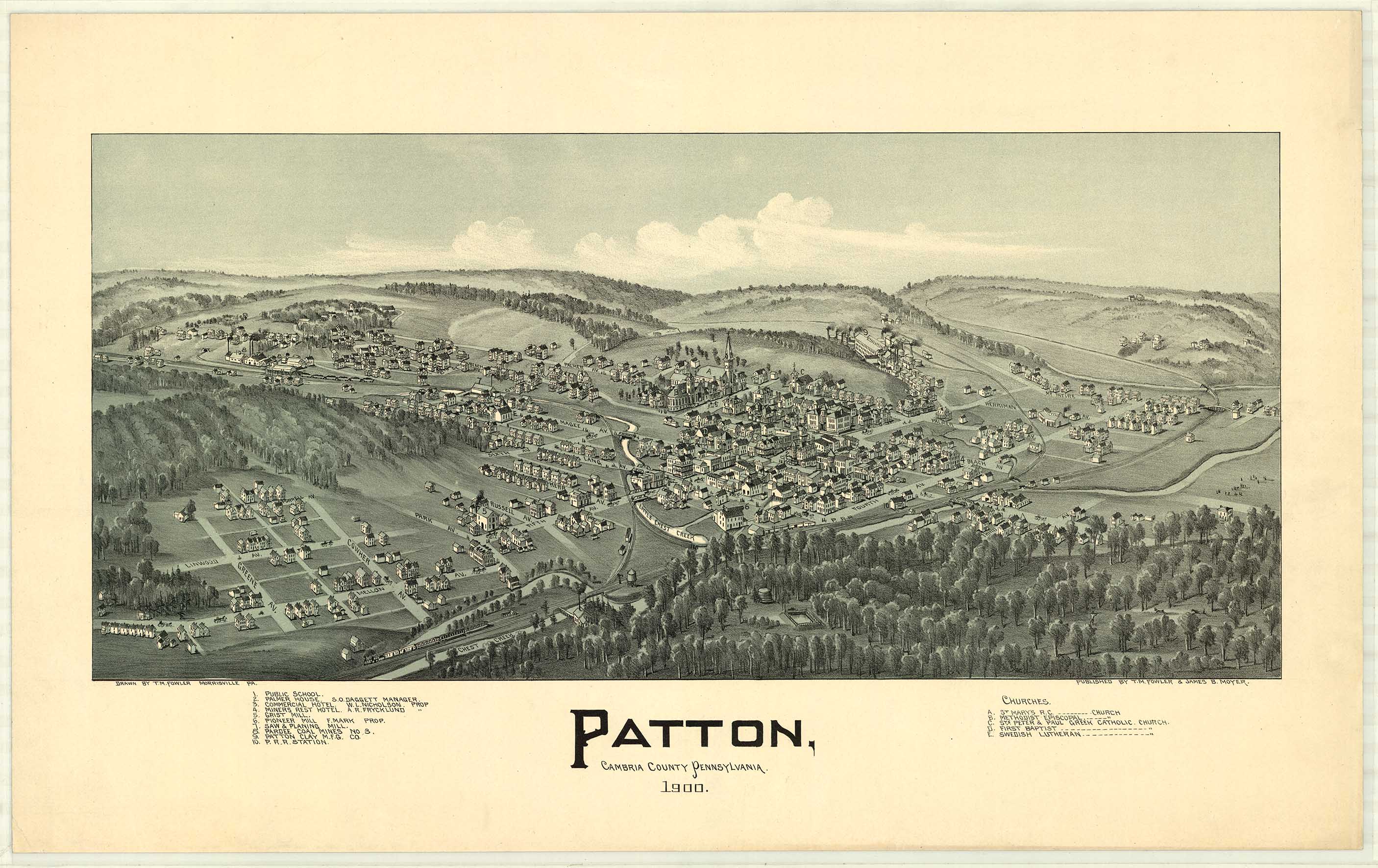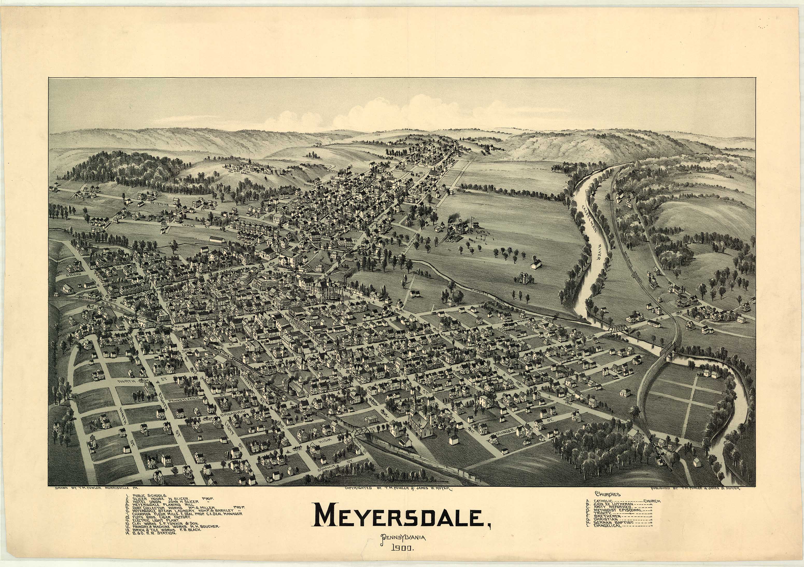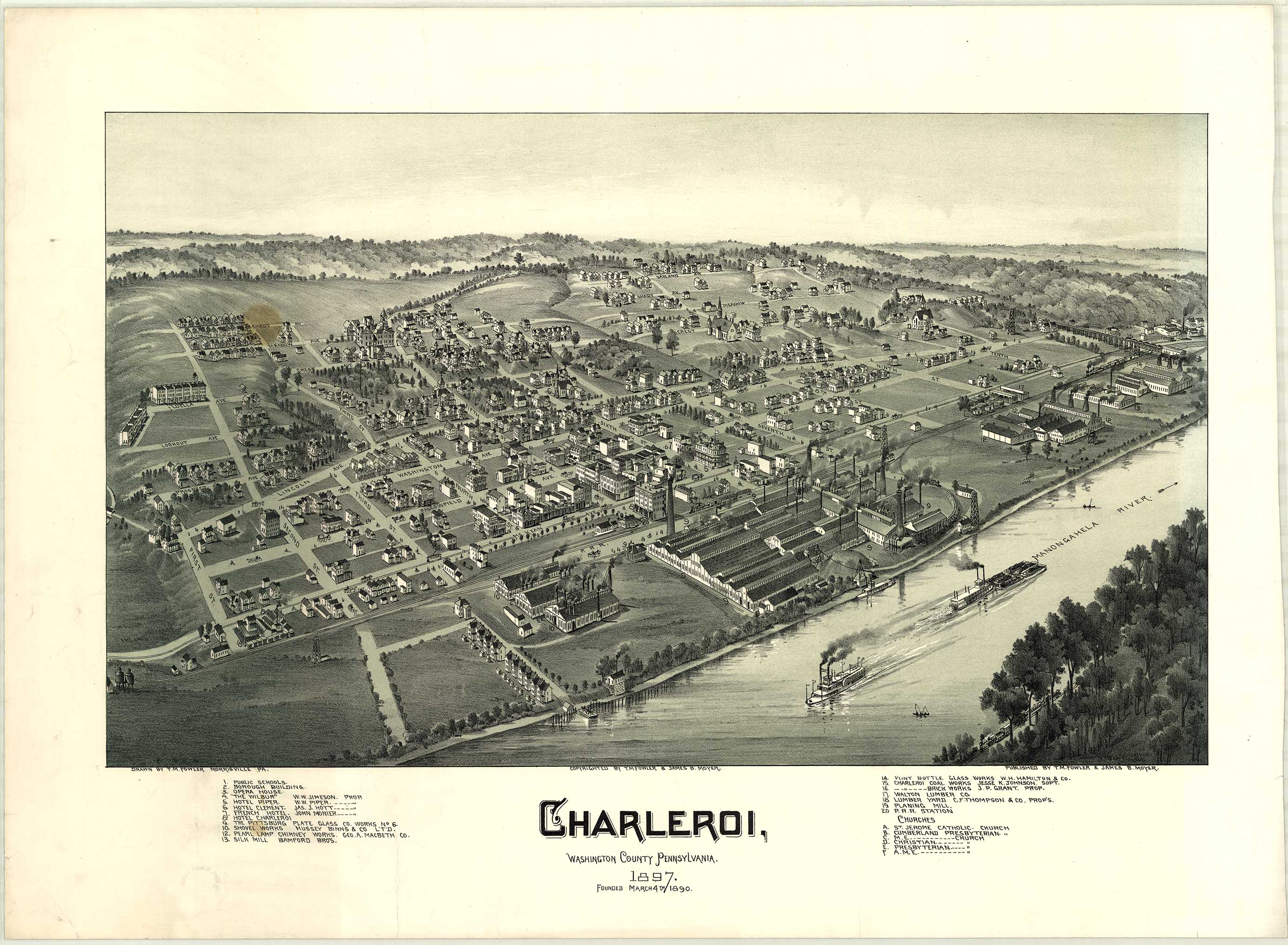 by T. M. Fowler & James B. Moyer. Shows: schools, iron and steel