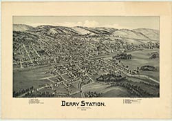 Station, machine shop, churches. 16 x 31. Lithograph. |