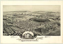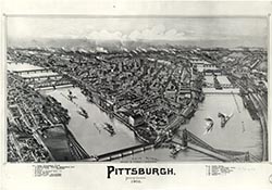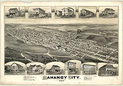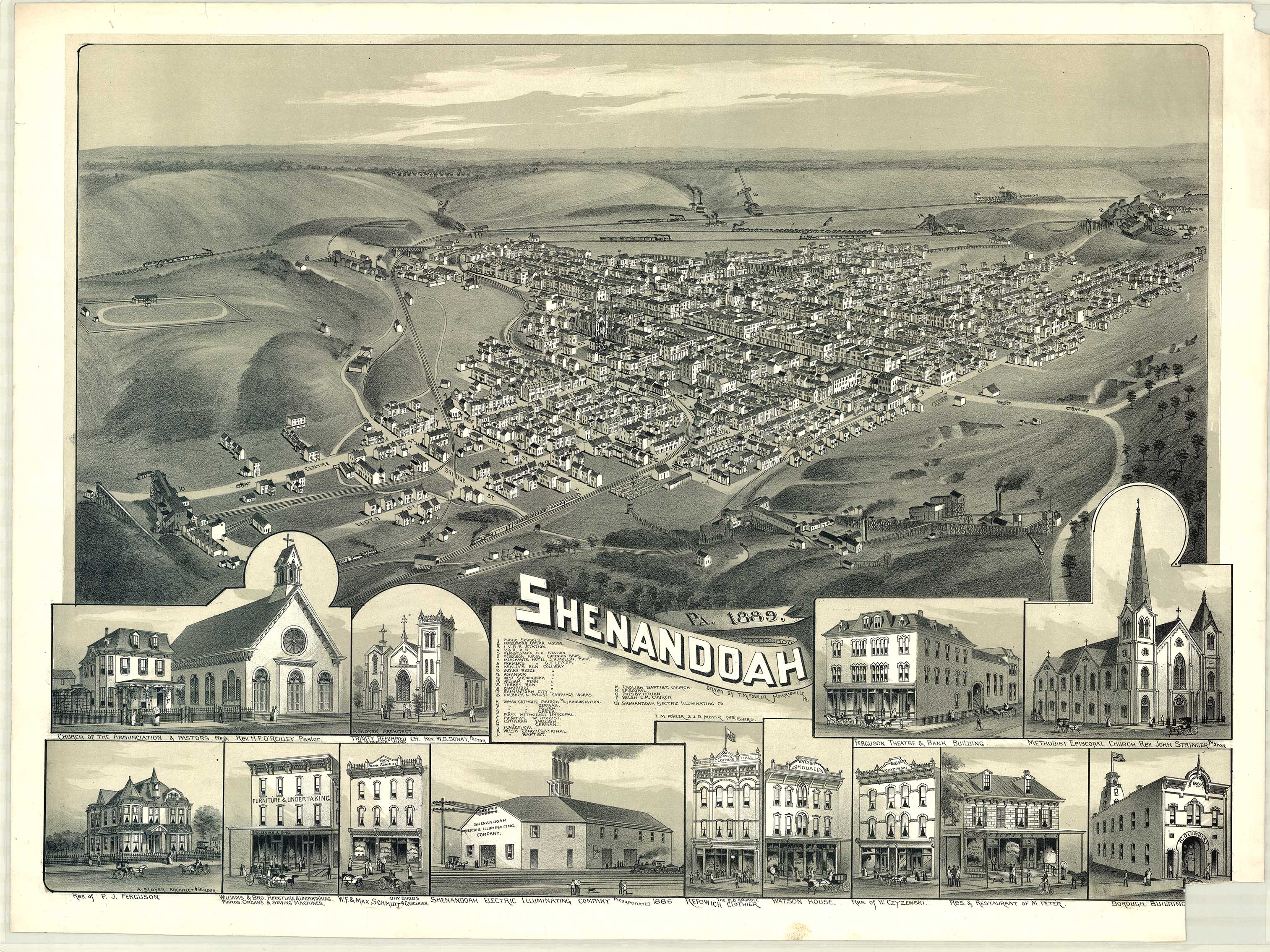 coal mines, Pennsylvania Railroad Station, churches. 15 x 22. |