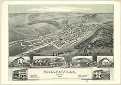 Shows: schools, opera house, railroad, hotels, collieries, carriage
