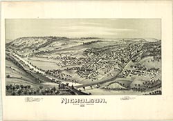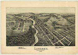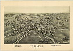 houses, railroad, churches. 19 x 27. Lithograph. |