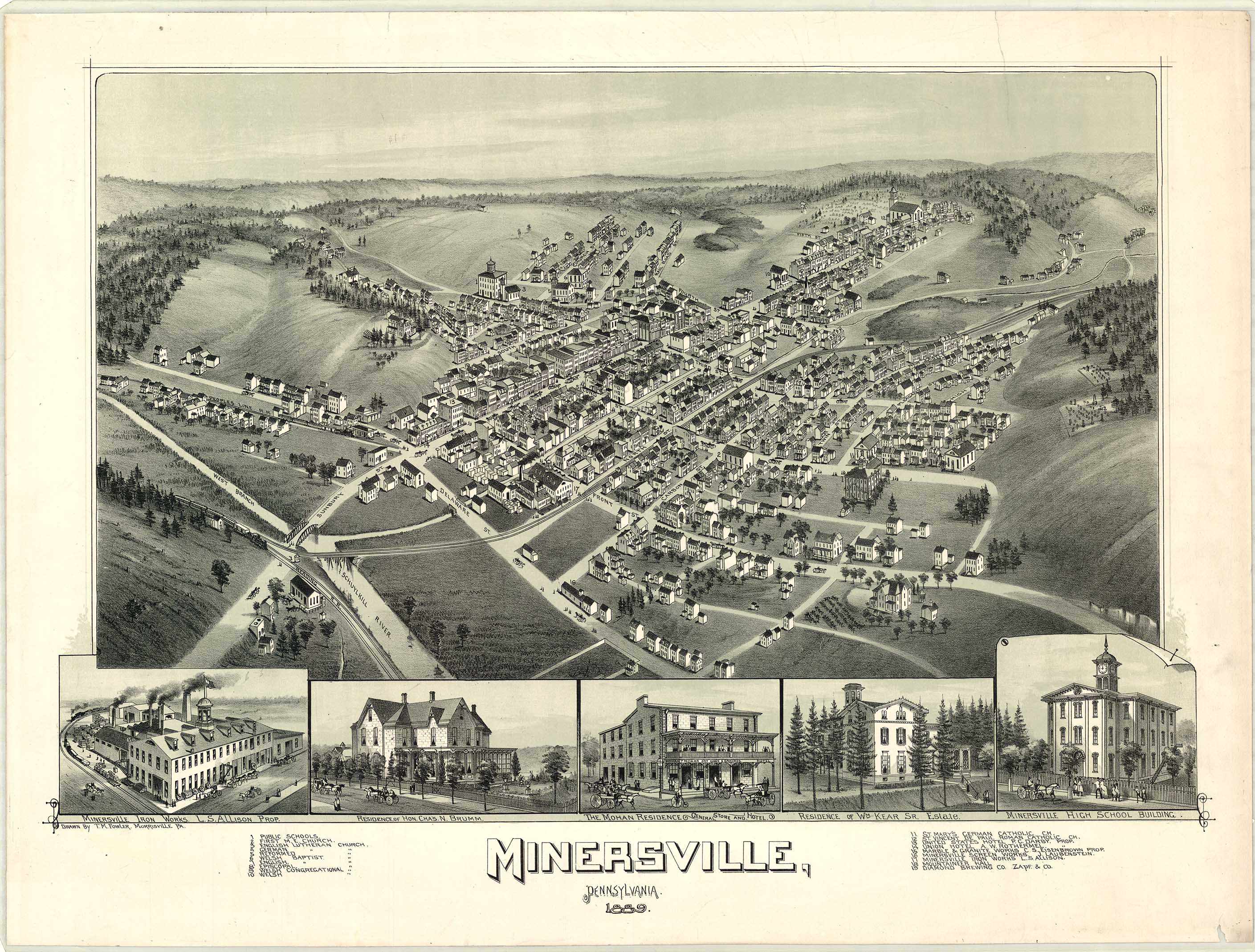 Beaver, Beaver County, Pennsylvania, 1900. Drawn by T. M. Fowler, Morrisville,
