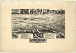 business houses, bank, tobacco dealers. Insets: churches, Hotel Strasburg;