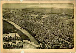 houses, railroad, churches. 22 x 30. Lithograph. |