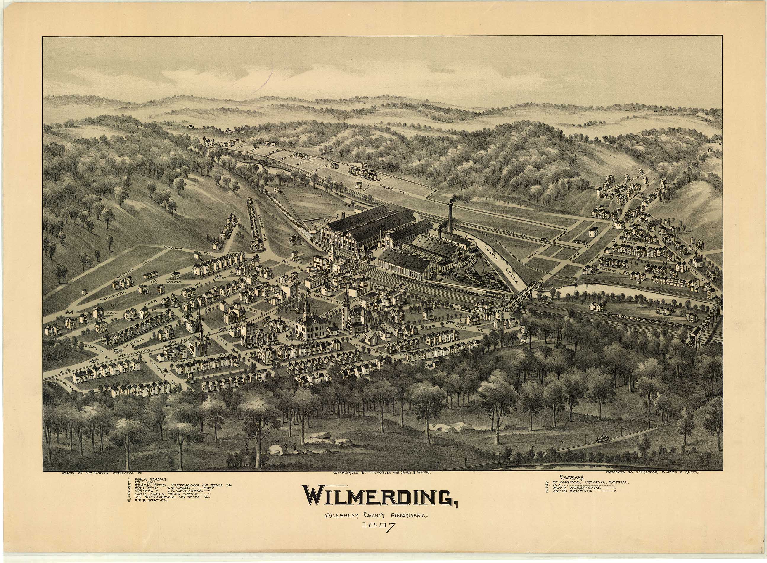 railroad, churches, Westinghouse Air Brake Company. 18 1/2 x 26. Lithograph. |
