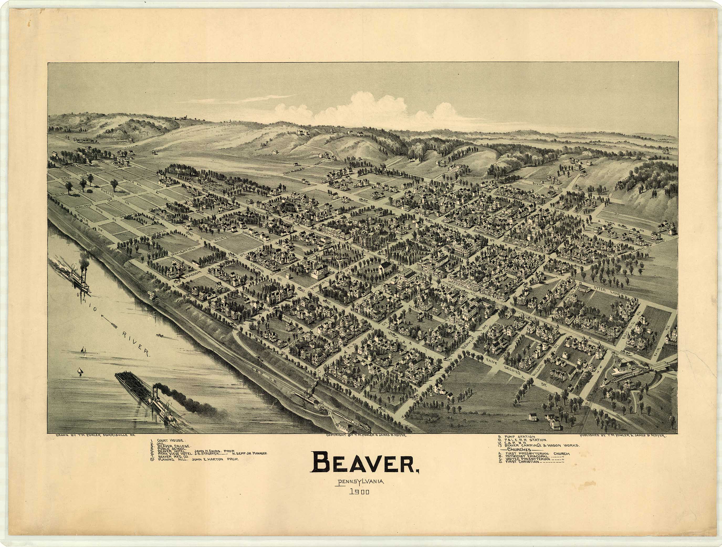 Beaver, Beaver County, Pennsylvania, 1900. Drawn by T. M. Fowler, Morrisville,