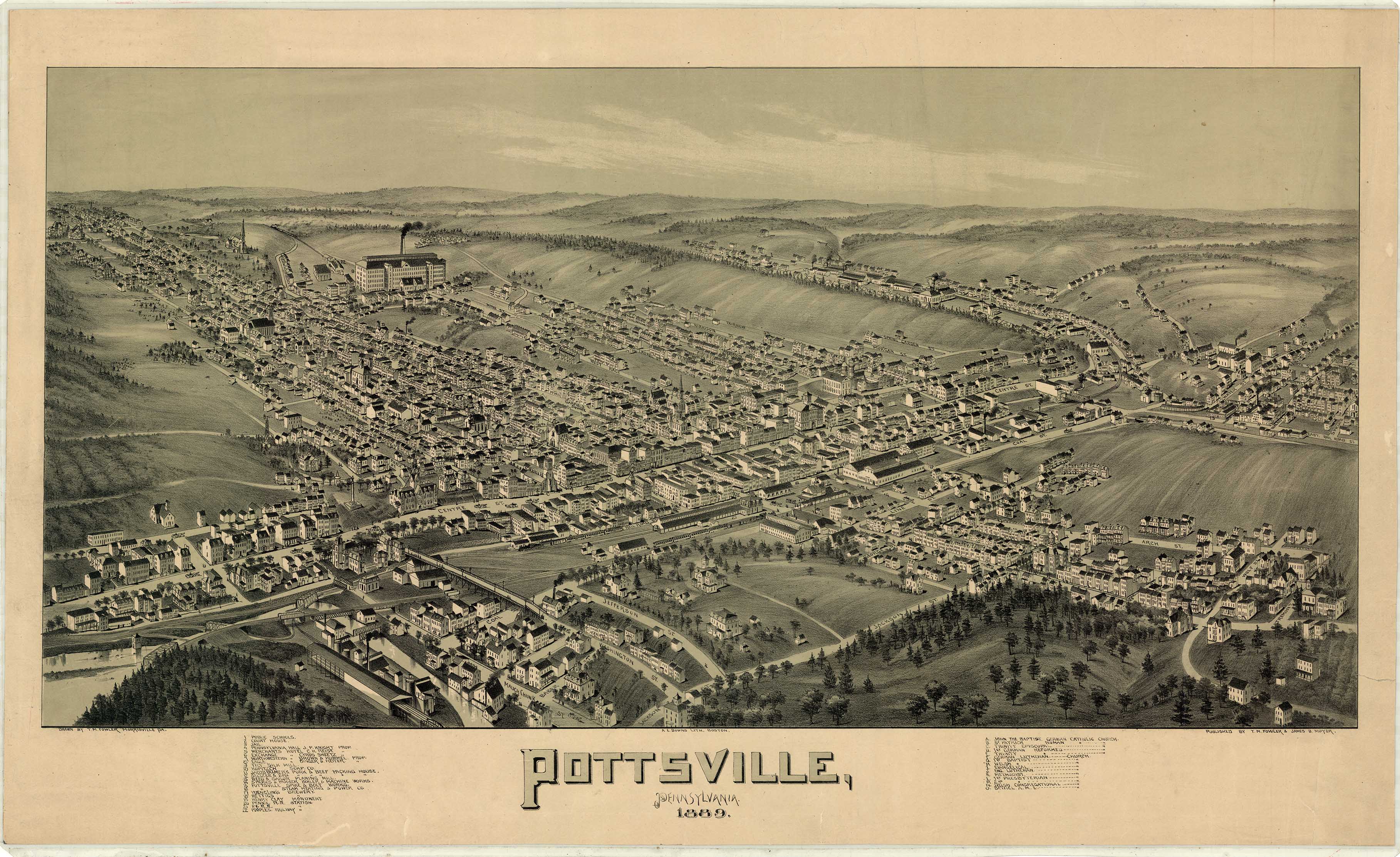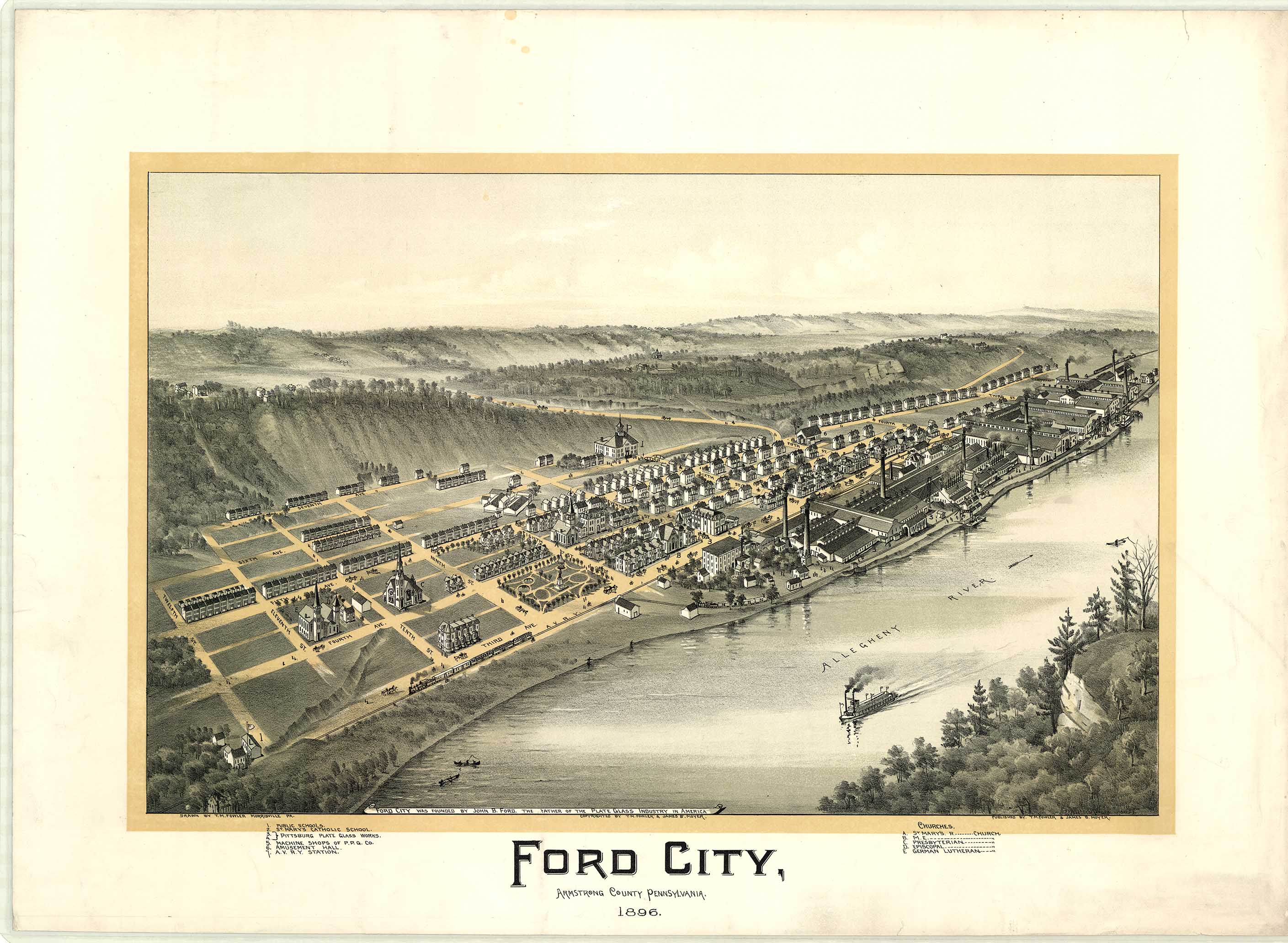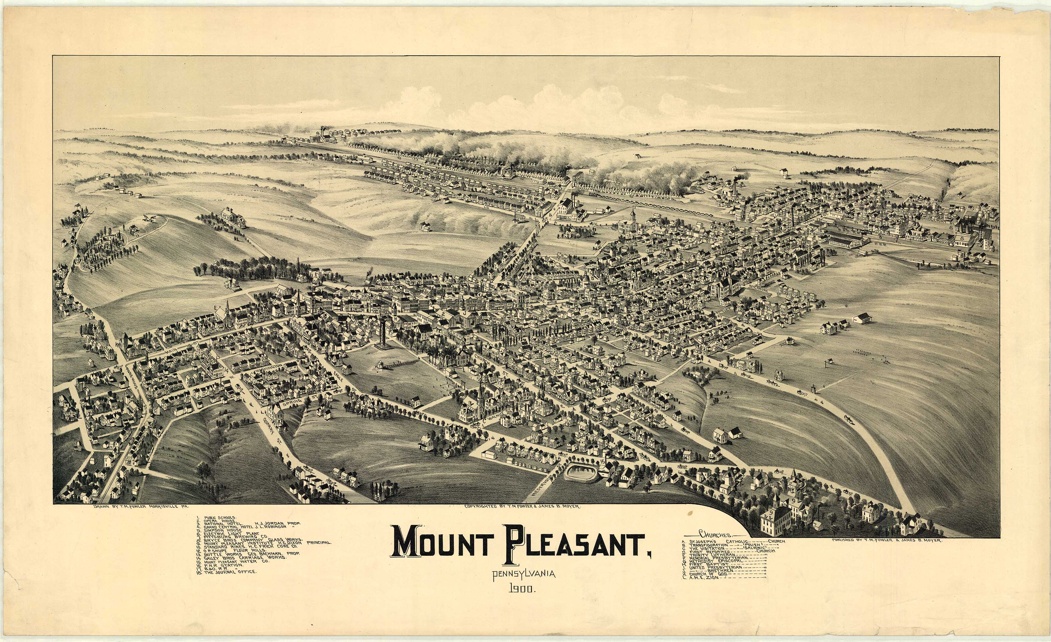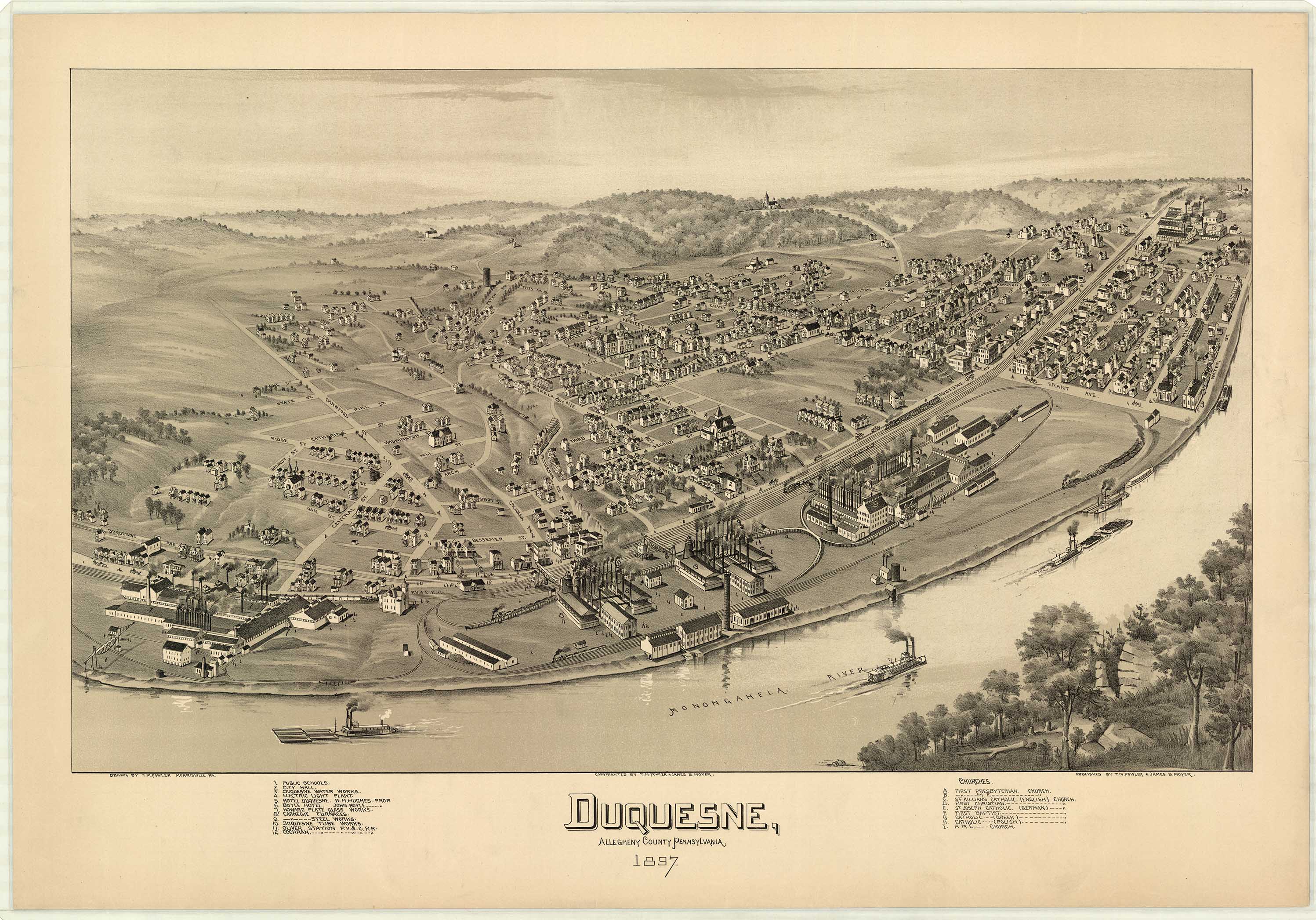 by T. M. Fowler & James B. Moyer. Shows: schools, iron and steel