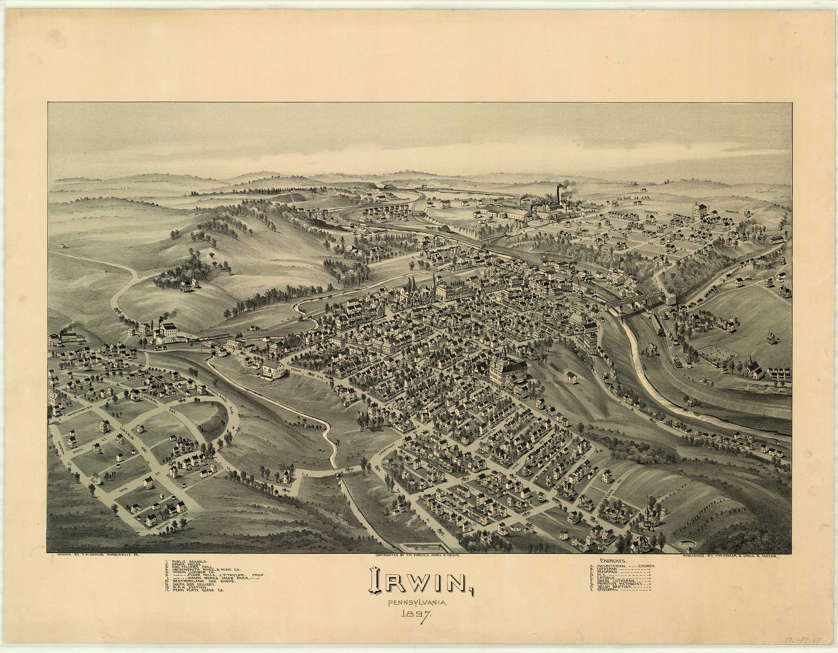 coal mines, Pennsylvania Railroad Station, churches. 15 x 22. |