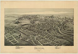 houses, railroad, churches. 22 x 30. Lithograph. |