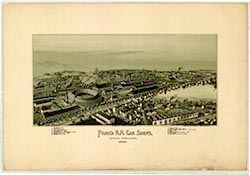 Station, machine shop, churches. 16 x 31. Lithograph. |