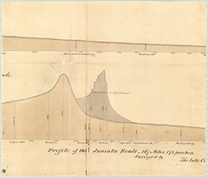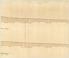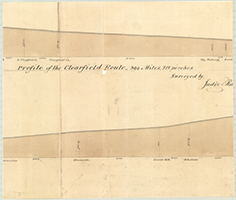 Book 14, page 02 "Profile of the Clearfield Route, 394 miles, 218 perches. Surveyed by Judge Rawle, n.d. Profile of the Juniata Route, 267 miles, 173 perches." Surveyed by, the late Commissioners, & John Davies, Esqr., n.d. (8 sections) |