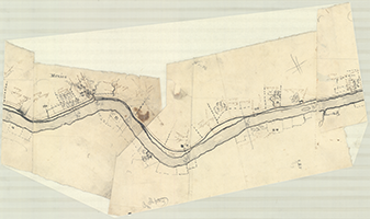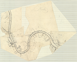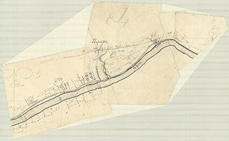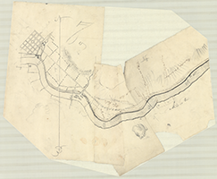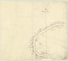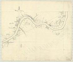 Book 15, page 10 "A set of eleven surveys on the Juniata River and the Juniata Canal, Huntingdon Division," [From Smith's Mill to Beyond Raystown Branch], n.d. (1 section) |