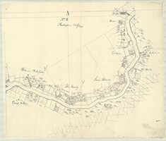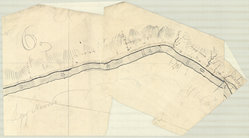 Book 15, page 06 "A set of eleven surveys on the Juniata River and the Juniata Canal, Huntingdon Division," [From beyond Gallowaysford], n.d. (1 section) |