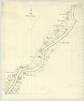 Book 15, page 18 "Eight Surveys of the Juniata River and the Juniata Division Canal descending pasat Little Buffalo Creek, Thomsontown, Bill's Island, Mifflin, Mexico," n.d. [From 35 to 40 miles], n.d. (1 section) |