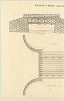 Book 17, page f "Beaver Creek Aqueduct," n.d. Shows: Elevation, Ground Plan, Cross Section. (2 sections) |