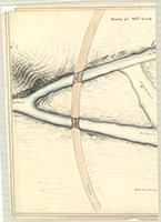 Book 17, page g "Works (Aqueduct) at Mill Creek," n.d. Shows: Cut for West Branch, Aqueduct. (2 sections) |