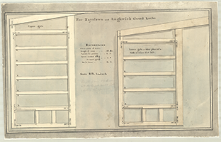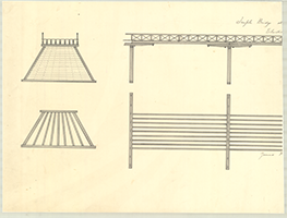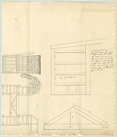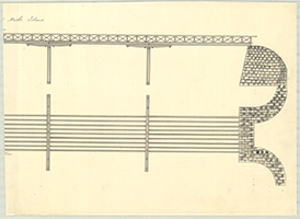 Book 17, page m "Trussle Bridge at North's Island," n.d. Shows: Elevation, Ground Plan. (2 sections) |