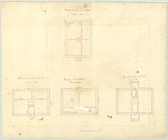 Book 17, page n-1 "Morris Canal Lock house, Farmington Canal lock house, Virginia Lock House, Erie Canal lock House," n.d. Shows: Ground Plan. (1 section) |
