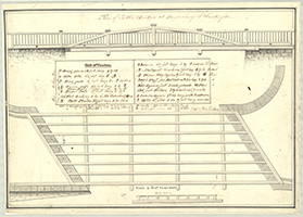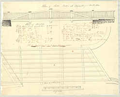 Book 17, page p "Public Bridge at Lewistown," n.d. Shows: Elevation, Ground Plan. (1 section) |